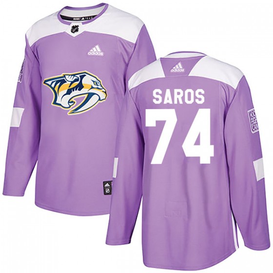 Men's Authentic Nashville Predators Juuse Saros Adidas Fights Cancer Practice Jersey - Purple