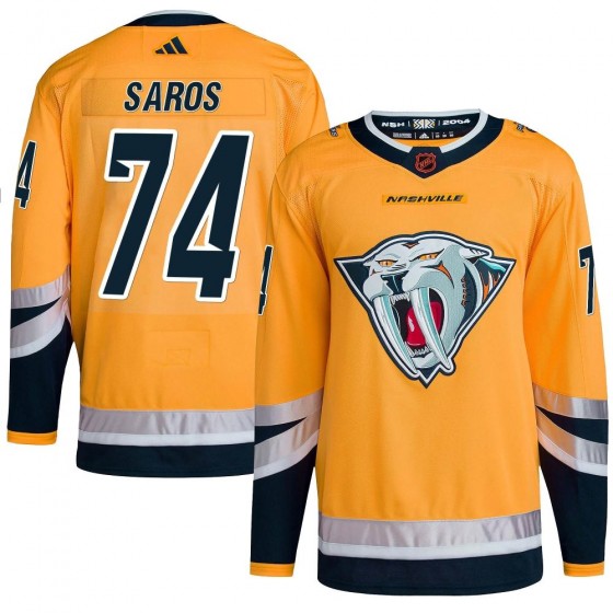 Men's Authentic Nashville Predators Juuse Saros Adidas Reverse Retro 2.0 Jersey - Yellow
