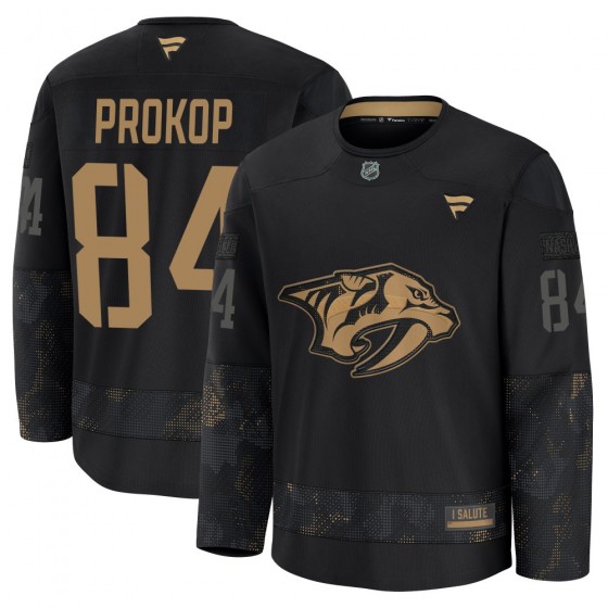 • Men's Premium Nashville Predators Luke Prokop Fanatics 2024 Military Appreciation Practice Jersey - Black