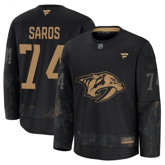 • Youth Premium Nashville Predators Juuse Saros Fanatics 2024 Military Appreciation Practice Jersey - Black